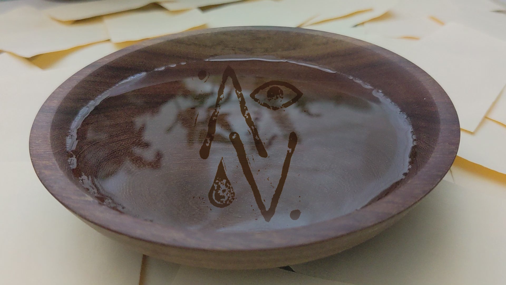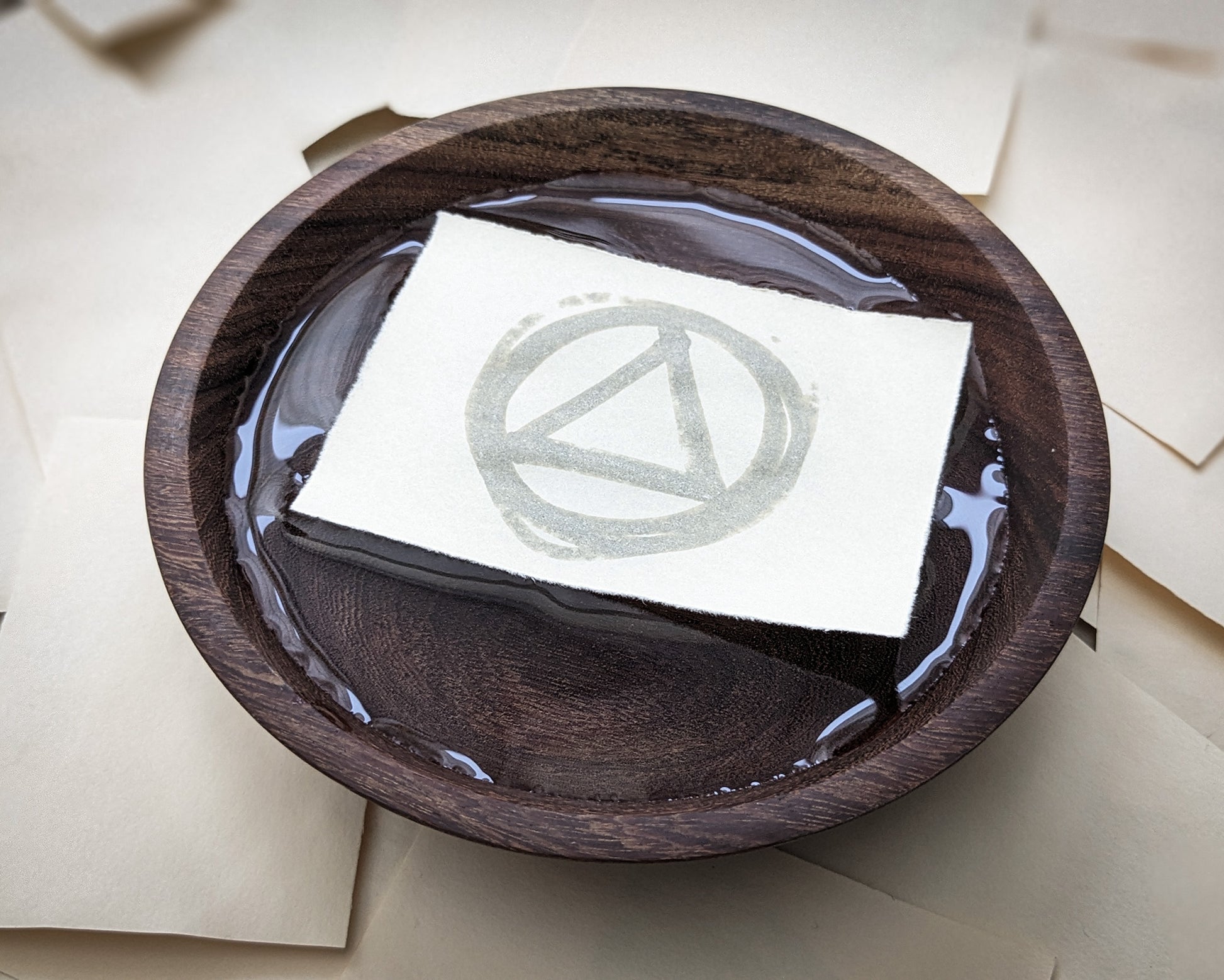 Aquavisio is a marker pen that writes with a quick drying ‘invisible ink’. The message visually appears when the paper is placed flat on the surface of water in a small Bowl.
