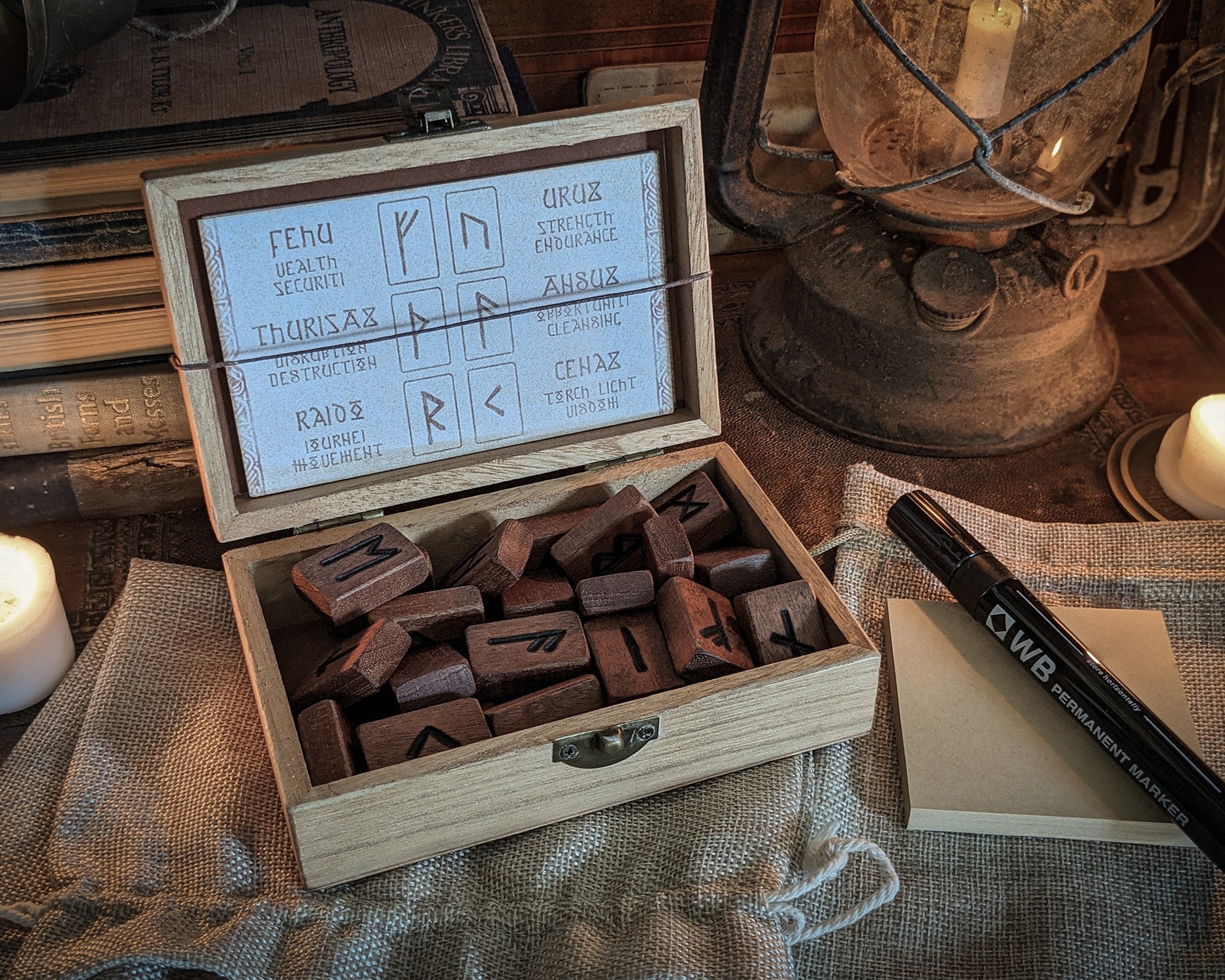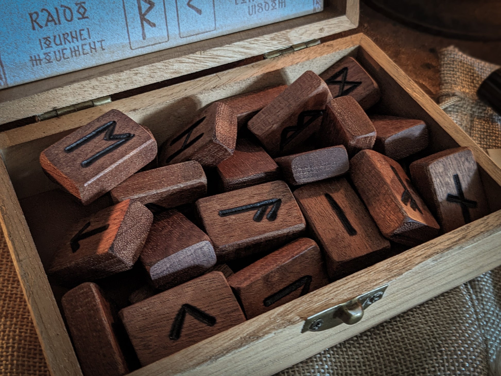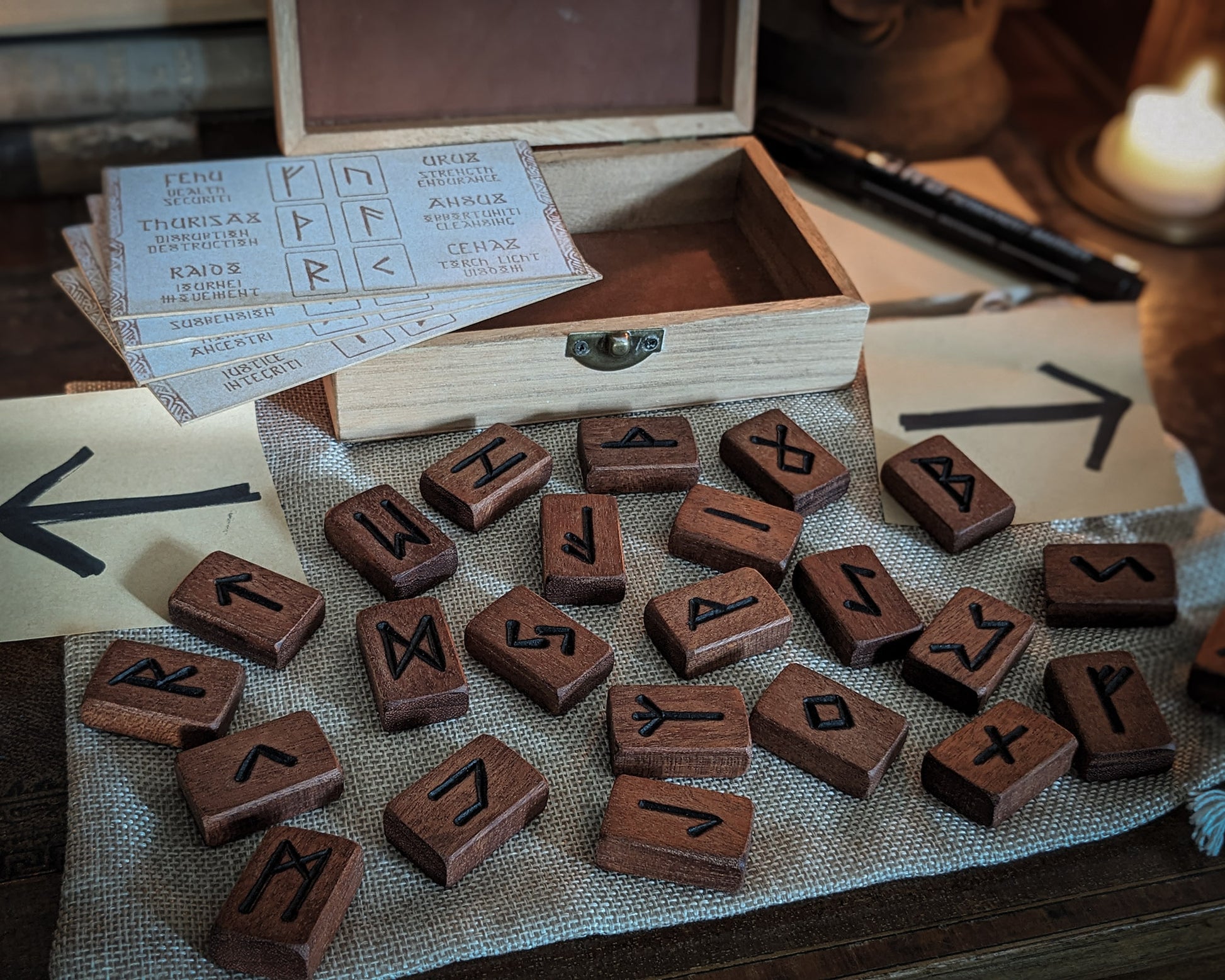 A set of wooden Elder Fulhark Runes that can be used for genuine readings but also give